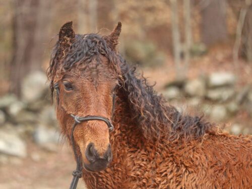 This yearling curly filly is very well bred – outstanding potential- sporty smart beautiful and sweet. Handled since birth- excellent ground manners. Strong driving genes .. pedigree goes back to original historic Curly bloodlines ( Damele, Mead, Colonel Austin) Sire is registered American shetland with exemplary bloodlines- Chantilly can make your dreams come true !