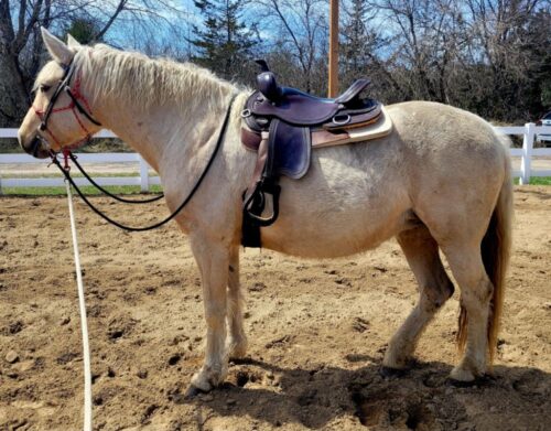 Looking for a kind, versatile horse with a big heart? Maddie is a gorgeous 2010 Curly Palomino mare, ABC registered, standing 15H and weighing about 1,200 lbs. She’s beautifully built with a full mane and tail—perfect for riders who appreciate a solid, comfortable horse.